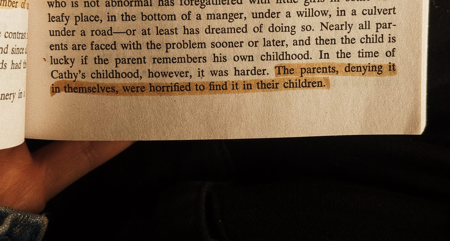 As Steinbeck later says, “The parents, denying it in themselves, were horrified to find it in their children.”